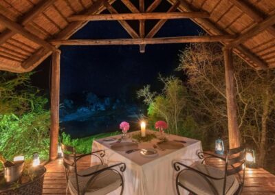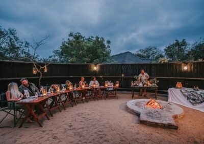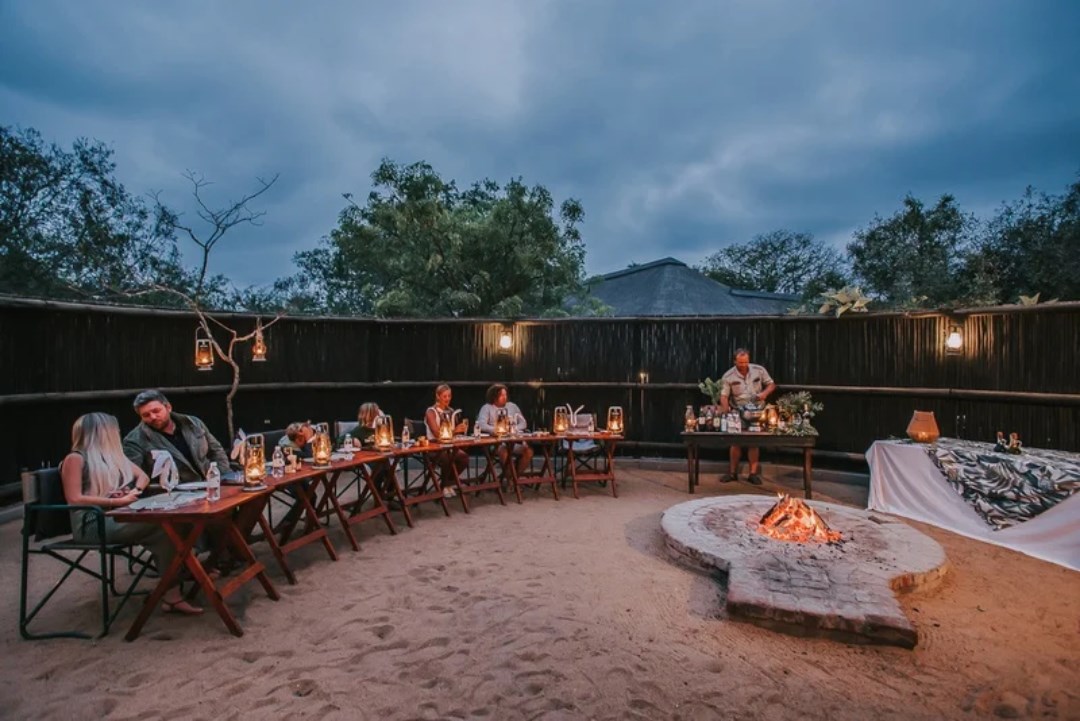 When evening falls, glimmering lanterns lead the way to a traditional African boma for fireside dining against a backdrop of the bush chorus.